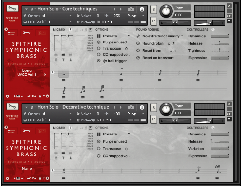To get the best use out of it, make sure you put all the instruments into one Kontakt multi, use the same MIDI channel for all, and don’t forget to enable UACC KS. This way, only one articulation plays at any given time, even though you use multiple instruments on one MIDI channel.